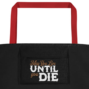 Here's the perfect tote for your daily wanderings! Whether you're headed to class, the beach, or a Lord Huron concert, you'll have your essentials close at hand with the May You Love Until You Die tote bag. Show off your style and your good taste in music--this bag is complete with an original artwork inspired by Lord Huron!