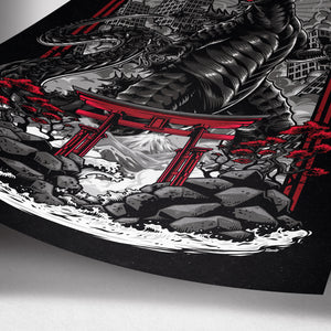 Unleash the king of monsters with this dynamic, original Godzilla-inspired illustration! Showcasing bold, intricate details and an electrifying atmosphere, this poster is a must-have for kaiju fans and art enthusiasts alike. Bring a touch of cinematic power to your collection.