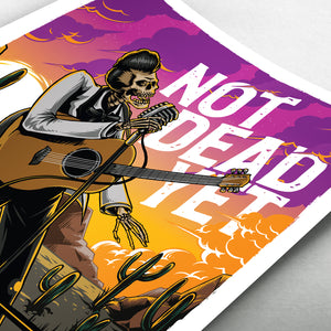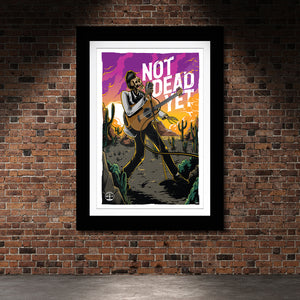 Treat your walls to a bit of rock-inspired art with this "Not Dead Yet" poster! Featuring original artwork inspired by the Lord Huron song, this poster is sure to brighten up any room with its vibrant colors and creative design. Perfect for any fan of indie rock and musically inspired art!